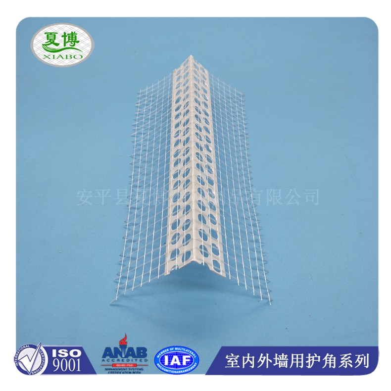 保溫護角網采用高強度的聚乙烯原料制造,耐腐蝕、抗沖擊、防老化、耐侯性好,具有優良的機械、力學性能等。施工時不需要用靠尺板,將改變傳統煩瑣的施工過程,因此還可節約大量木材,同時降低工人的勞動強度,提高工效3-5倍,縮短施工時間,降低工程成本。傳統建筑工程中的邊角都是采用水泥包沙角的手工施工方法,既費時又耗材,稍有不慎,極易造成垂直失準或墻面凹凸不平的情形發生,而且這樣制成的邊角牢度差,一不小心碰撞即成缺角,修補時費工費時費料又不美觀。現在,我們將高強度的型材埋在墻角處,不但美觀碰不壞,還可起到加強筋的作用,提高墻角兩側的強度。